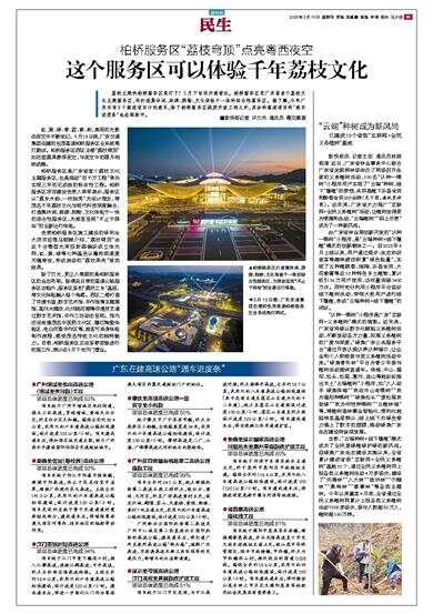 荔枝主题的柏桥服务区亮灯了!5月下旬将开通营运。柏桥服务区是广东省首个荔枝文化主题服务区,将打造集休闲、旅游、购物、文化体验于一体的综合性服务区。据了解,今年广东共有9个高速项目计划通车,除了柏桥服务区提质升级工程之外,其余的高速项目的“通车进度条”也在刷新中。