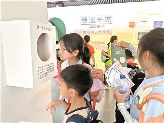 “想象一下,你现在站在广州城的原点,有三个入口可以进入不同时空的广州……”南汉二陵博物馆“寻迹羊城2024——广州古城考古新发现”展览的入口有一个白色的木箱,中间掏出一个圆洞,箱子里有“南越修苑”“宋代修城”“清代修史”三张任务卡,观展者被邀请先随机抽取一张选择角色身份,再用游戏的方式打开展览。举个例子,抽到了清代修史副本的观众,身份就是居住于学海堂书院的一名书生,需要帮助学海堂正在奉旨重修《广东通志》的创办人阮元,进入清代的广州城,寻找修史有关的三个物料。