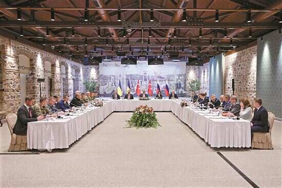■5月16日,在土耳其方面主持下,俄罗斯和乌克兰代表团在土耳其伊斯坦布尔举行会谈。新华社发