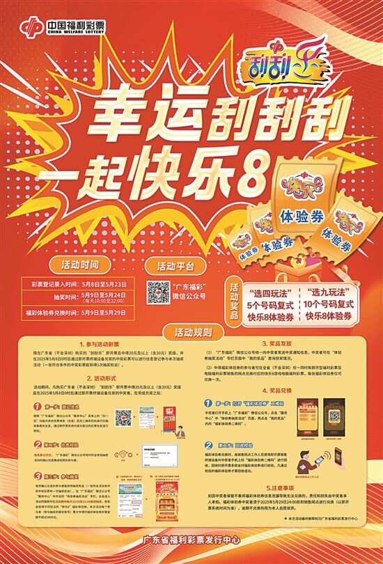 要提醒各位购彩者的是,目前由广东省福利彩票发行中心推出的“幸运刮刮刮,一起快乐8”融合推广营销活动正在进行中。