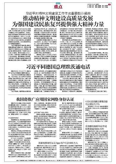 据新华社电 破解公民身份信息网络泄露难题,加强个人信息保护。公安部、国家网信办等6部门5月23日联合对外发布《国家网络身份认证公共服务管理办法》,推进国家网络身份认证公共服务建设,进一步推广应用公共服务。管理办法将于7月15日起施行。