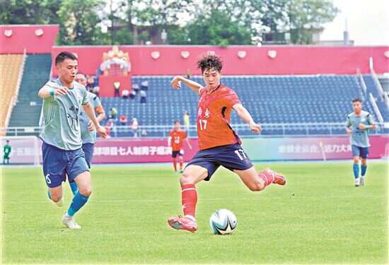 新快报讯 记者高京报道 5月23日上午,第十五届全国运动会群众赛事活动足球(七人制男子组)决赛在佛山市三水区云秀山体育场和健力宝足球青训中心正式拉开帷幕。在男子甲组的首场比赛中,广东队以6:0击败西藏队。