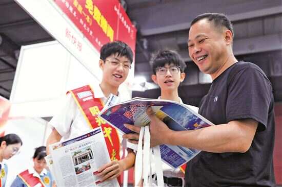 不少考生和家长拿到《阳光中考》特刊之后就津津有味地研读起来。来自广州市黄埔区的王先生对特刊的“第三批次梯度图”部分特别赞赏。“这本特刊把学校往年的录取最低分数和末尾考生志愿排序以十分直观、清晰的方式呈现出来,让家长省时省力。”王女士说,她的孩子想了解职校的相关信息,通过阅读《阳光中考》,她了解到“3+2”中本贯通的报考资讯,“之前没有听说过,了解到这一政策,孩子填报志愿多了一条可行的路径,这是此行的一大收获”。