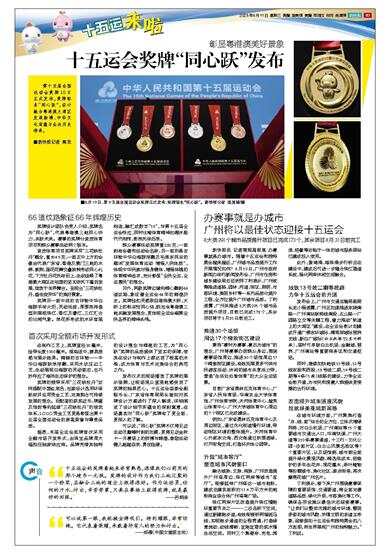 ■6月10日,第十五届全国运动会奖牌正式发布,奖牌取名“同心跃”。新快报记者 观显锋/摄