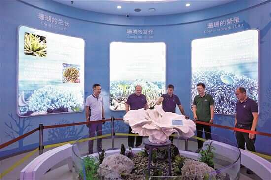 国家级珊瑚礁自然保护区是中国大陆连片面积最大、种类集中最多、保存最完好的珊瑚礁自然资源。扁脑珊瑚、盾形陀螺珊瑚……新快报记者在展厅一角看到,水箱里的各种形态各异、美丽的活珊瑚蠕动灵活,非常可爱。而展厅的另一边则以珊瑚标本、多媒体等方式展示了各种各样的珊瑚以及各自的特点、保护措施等。
