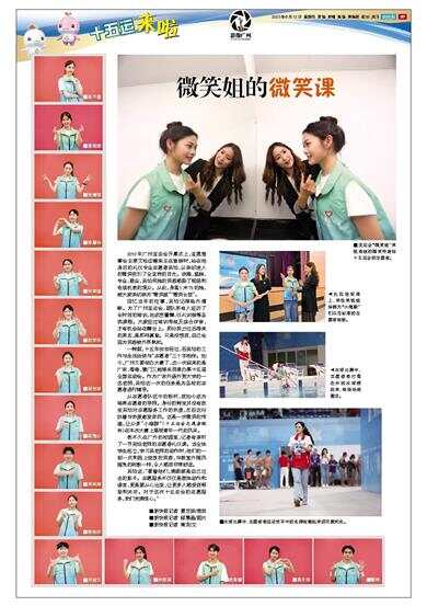 ■亚运会“微笑姐”吴悦将她的微笑传递给十五运会的志愿者。