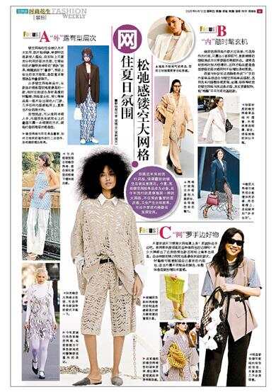 回顾近年来的流行风格,强调露肤的镂空总被反复提及。今夏,宽松镂空网格单品成为必备,且今年流行的是像渔网一样的大网格,不仅契合叠穿的层次感,又会产生立体效果,无论外穿或内搭都有发挥空间。