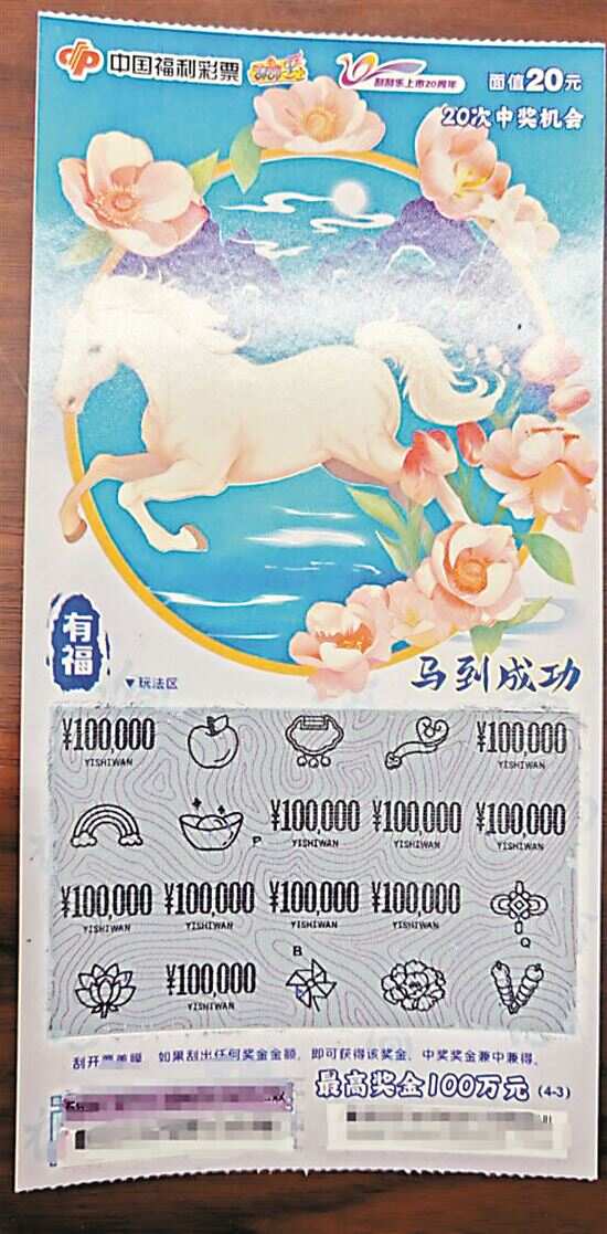据了解,“有福”是在刮刮乐上市20周年之际推出的一款新游戏,该票种面值20元,一套4枚,分别是“繁花似锦”“一路平安”“马到成功”“喜上眉梢”,票面精美,寓意美好,选取锦鲤、梅花鹿、骏马和喜鹊为创作元素,搭配牡丹、梅花等吉祥花卉,别具特色的“国潮”风格,洋溢着浓郁的文化魅力,寓意谋幸福、送祝福,生活美好,处处“有福”。