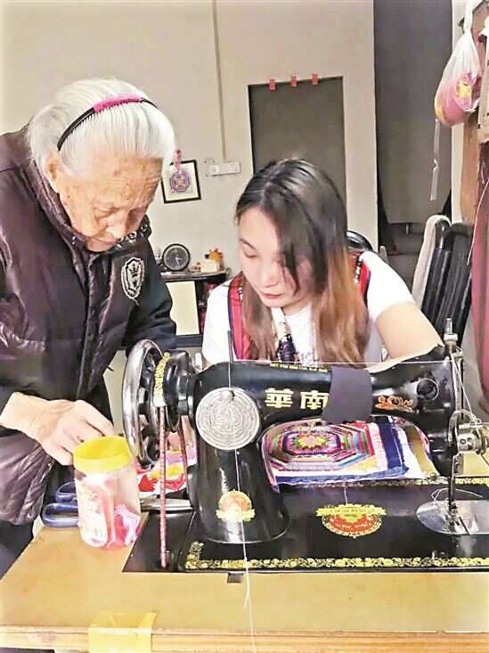中堂的罗运娣是“百岁”制作技艺在当代的主要传承人。2002年开始接触并学习百岁牌的制作,2007年起协助时年83岁的祖婆胡葵制作各色“百岁牌”,并在其悉心教导下学习了全套的“百岁”制作技艺流程。经过多年的学习与实践,罗运娣掌握了完整的“百岁”制作技艺,所制作的百岁牌针脚细密、纹样精致,造型质朴、色彩缤纷,品种繁多、各有寓意。