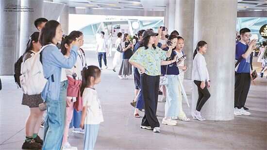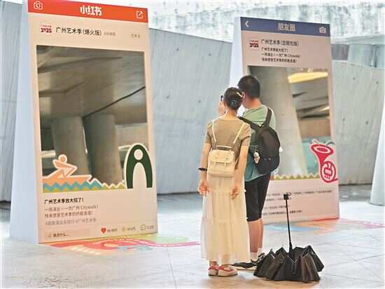 广州大剧院的环斜柱空间,化身为充满创意的立体艺术传播区域。人形“术”字打卡墙、水池边的艺术季“大相框”、照见艺术新玩法的“C位打卡神镜”等艺术装置错落分布,每前行几步,便能邂逅一处可触摸、可体验的艺术装置。不同年龄、身份的市民穿梭其间,或驻足拍照,或细细品味,艺术漫步成为连接城市记忆、艺术体验与全运激情的精神桥梁。