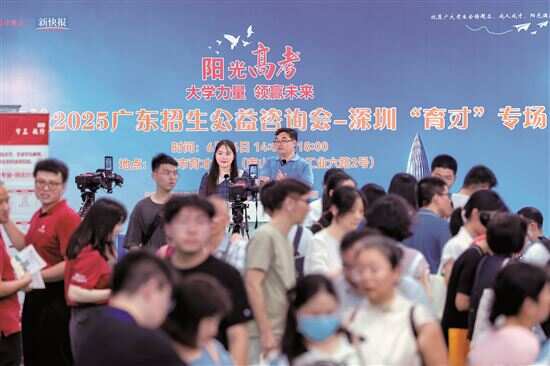 6月26日下午,广东新快报社主办的“阳光高考・赢向未来——全国高校2025广东招生大型公益巡展”系列高招会(深圳-南山区“育才”)在深圳蛇口育才教育集团育才中学举行,同济大学、北京师范大学、中山大学等数十所热门高校为广大考生和家长“一站式”解答志愿填报相关问题。当天共逾8000人次进场,现场人气火爆,《阳光高考》特刊开场不足1小时已一“抢”而空。活动还得到了广东太古可口可乐有限公司的大力支持。