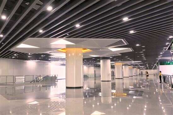 西塱站是十号线的三座特色站之一,也是一号线、广佛线的换乘站,未来该站还将接入二十二号线,成为四线换乘的枢纽大站,换乘大厅同步启用。被誉为广州“地铁起点”的西塱站,车站整体空间以“纯净白”为主色调,设计从“众人携手”与“树木生长”中提取灵感,天花造型以流畅的菱形模拟枝叶交叠的形态,通过白色金属格栅与木纹饰面的结合,既呼应“向上生长”的活力,又以木质纹理的温润质感柔化现代交通空间的冷峻感。