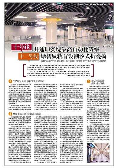 应用智能运维系统,广州地铁首条开通即实现最高自动化等级运营的线路,这是十号线;首次设置潮汐式折叠椅、配备无线/USB充电的绿智城轨列车,这是十二号线。两条“斜跨”广州中心城区的骨干线路,共同构成了广州城市轨道交通线网骨架中的“X”形对角线。