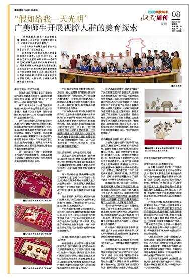 广州美院美术教育学院教授欧阳莉介绍,这次作品的呈现是美术教育学院与广州市启明学校合作的初步成果,也是美术教育学院开展特殊人群美育的拓展。“我们尝试从专业的角度为他们的世界开拓另一片天地,让他们感受到世界对他们的关爱和温暖。这次展览的确感动了很多观众,引发了共鸣,从抱在手里的婴儿到白发苍苍的老人都在体验着这件作品。这不仅仅是学生的一次创作,更应该是一次视障儿童的美育探索。”