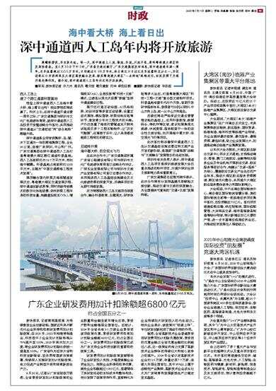 想登上深中通道西人工岛海中看大桥、海上看日出吗?现在梦想即将成真了。昨天上午,在深中通道开通运营一周年之际,广东交通集团与深圳市文化广电旅游体育局,就深中通道西人工岛投资开发暨战略合作签约,共同推动深中通道从“交通枢纽”向“综合地标”跨越升级。