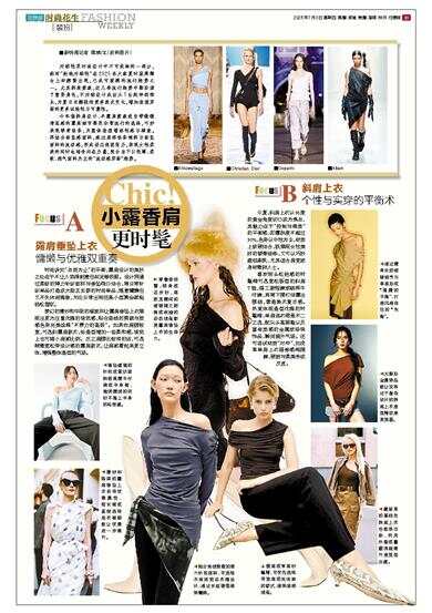 今夏,斜肩上衣以38度的黄金角度切口成为焦点,其魅力在于“控制与释放”的平衡感,即露肤度不超过30%,色彩以中性为主,材质上软硬结合,既展现女性美好的锁骨线条,又可以巧妙遮挡副乳,尤其适合肩宽或身材微胖人士。
