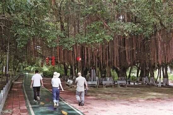 ■在渡头村党建公园里,一棵百年古榕独木成林。
