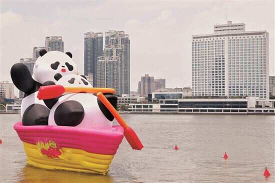 除了水上的大型气模,在白鹅潭艺术中心码头服务中心,熊猫主题公益展成为活动首站亮点。“手工熊猫科普展”将软萌的熊猫造型与生动的科普内容结合,每周日下午还将有专业讲师围绕熊猫知识、生态保护展开科普,从熊猫的生活习性到全运会生态理念的实践,内容丰富生动。