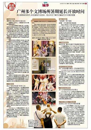 国家文物局日前发布通知,具备条件的博物馆暑期原则上可取消预约限制。新快报记者观察发现,时值暑期,广州多家文博场所为更大限度满足公众参观需求,陆续升级服务,推出延长开放等措施,让游客与市民朋友在避暑纳凉的同时,有更多时间与历史对话。为丰富观众体验,不同文博场所推出不同特色活动,让市民朋友在清凉的场馆里玩转历史、邂逅艺术,乐享文化大餐。