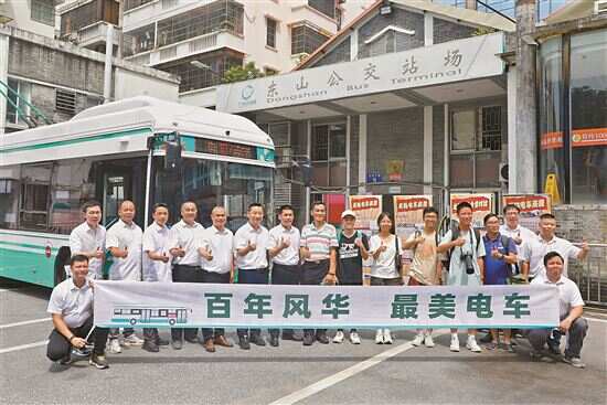 7月18日上午,广州公交集团打造的复古电车在东山总站亮相,并组织乘客代表和巴士爱好者乘坐体验。