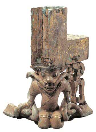 人操蛇托座,西汉南越国时期,1983年象岗南越王墓出土,南越王博物院藏
