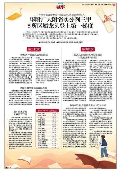 今年,广州市的区属普通高中外区计划共7087个,四个批次累计录取3968名外区考生,计划利用率为56%。外区计划的录取人数、计划完成率均超去年,缓解中心城区学位压力,促进全市普通高中学位供给均衡发展。16所外区计划为25%的学校中,黄埔区广州实验中学、南沙区二中南沙天元学校、增城区应元学校、增城区广大附中增城实验中学、从化区第五中学等5所学校的外区计划利用率达到100%。
