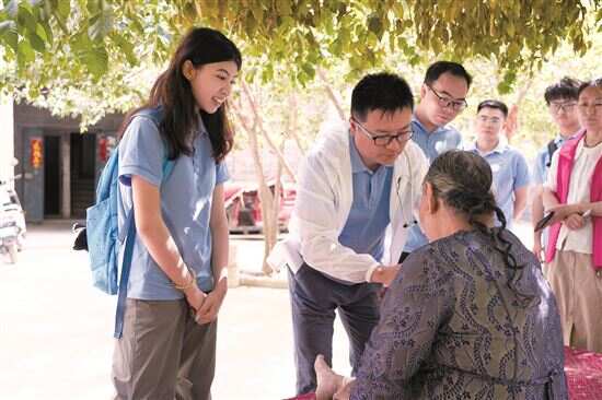 ▲广东医科大学“丝路医行”实践团的师生为边疆群众开展义诊活动。