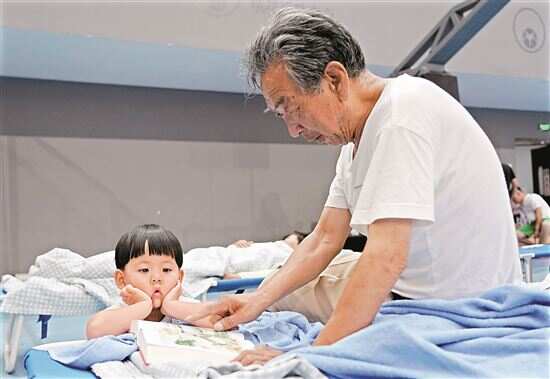 ▲7月29日,村民在北京市平谷区体育中心安置点阅读。