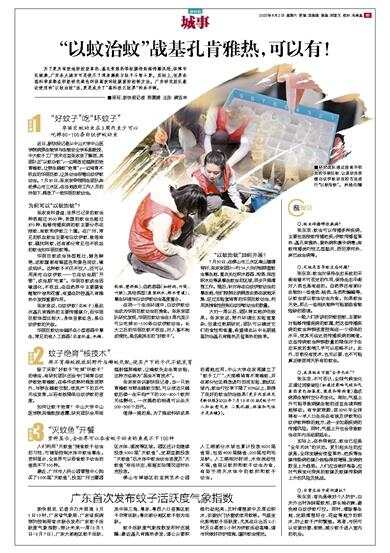 新快报讯 记者许力夫报道 8月1日19时,广东省气象局、广东省疾病预防控制局首次联合发布广东蚊子活跃度气象指数:预计未来一周(8月1日-8月7日),广东大部地区蚊子活跃,其中珠三角、粤东、粤西人口密集区蚊子非常活跃;粤北部分地区蚊子较为活跃。
