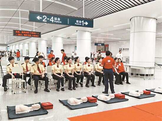 截至目前,“公益福彩 助在身边”公益项目及蓝态公益基金会已累计为广东城际培训超过两百名员工,通过实操考核让员工熟练掌握急救技能,形成“设备全覆盖+人员全培训”的双重保障体系。