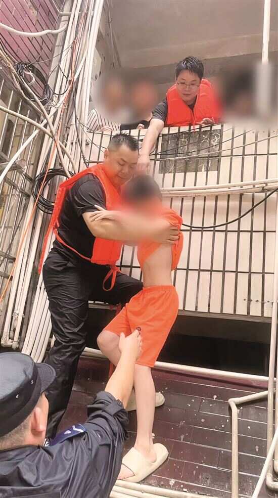 九旬老人被困家中,警员用后背筑起移动“安全岛”