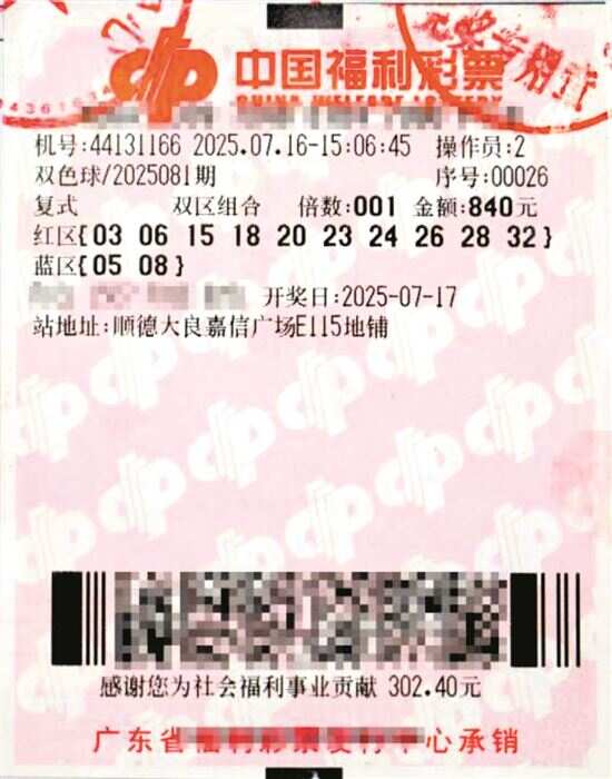 新快报讯 记者陆妍思 通讯员袁苏华报道 中国福利彩票双色球第2025081期开奖中,佛山市顺德区44131166福彩销售站点中出1注一等奖,中奖彩票是一张单倍“10+2”复式彩票,共中得1注一等奖、1注二等奖及多注固定奖,中奖总奖金共868万多元。