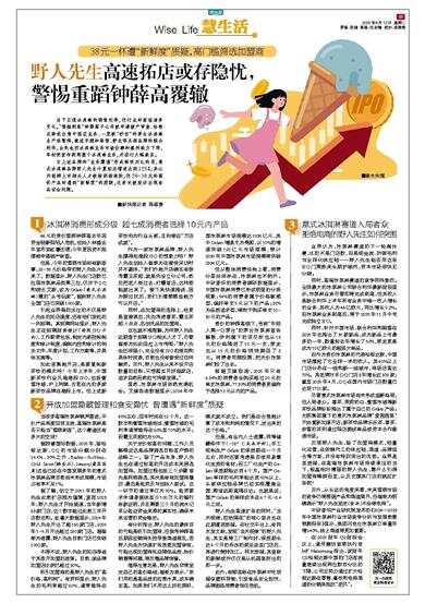 有分析指出,野人先生的最终目的可能是吸引加盟商,但参考钟薛高后期因经销商失控导致渠道混乱,若野人先生为快速扩张放宽加盟审核,可能出现加盟商私自降低品质、抬价销售等问题,将反噬品牌信誉。