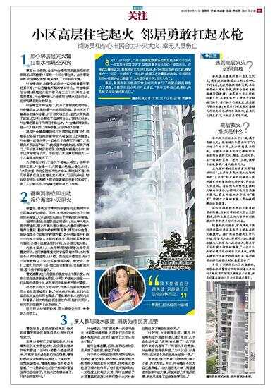 叶金峰说:“我们都是第一次参与救火,水枪架设得不稳,水柱射过去应该也瞄不准起火点,但我们避免了火势从阳台扩散。”