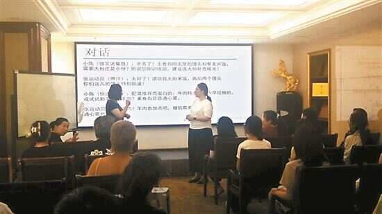 作为课程核心设计者,来自广州无障碍手语服务中心的教师通过手语翻译强调:“手语不仅是手势,更是表情、方向和节奏的舞蹈。”随后,主讲教师用手语和表情,演示可能发生在十五运会和残特奥会上的“场馆指引”“医疗协助”等情景。课程围绕情景教学,演示着手势角度偏差带来的不同意思,解释着各种手语蕴含的文化意义。课堂里安静得落针可闻,台下学生却边看边做动作,学习氛围浓烈。