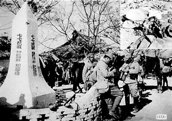 ■广东省韶关市翁源县官渡镇,日军拍摄到的“七七抗战阵亡将士、死难同胞纪念碑”。
