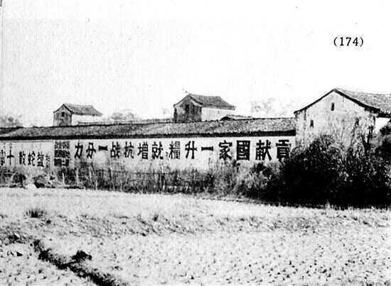 ■广东省韶关市翁源县官渡镇,日军拍摄到的抗战标语:“贡献国家一升粮,就增抗战一分力”。