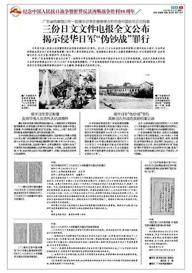 同时,广东省档案馆日前全文公布了一批侵华日军在香港侵占和伪造中国法币有关日文文件电报档案。这批日文档案史料是日本学者松野诚也今年3月25日向广东省档案馆捐赠的。广东省档案馆组织专家对这批日文档案进行鉴定,请华南师范大学外国语言文化学院吴佩军教授对其作了全文翻译,积极推动开发利用工作。