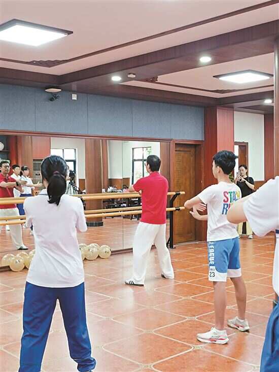 广雅中学校友暑假期间回到母校,教学弟学妹打太极。