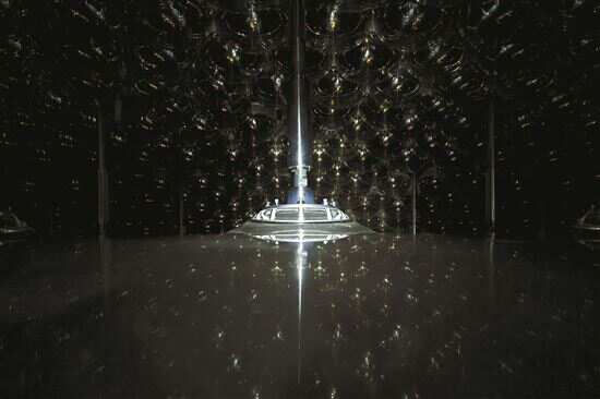 要探测中微子,有一样东西特别关键,它就是光电倍增管,科学家称其为“黄金瞳”,它能看到中微子击中闪烁体时发出的微弱荧光,这亮度仅仅只是手机屏幕亮度的百亿分之一。相当于把手机放到50多公里外的地方,黄金瞳依然能够清楚地看到微弱的光亮。