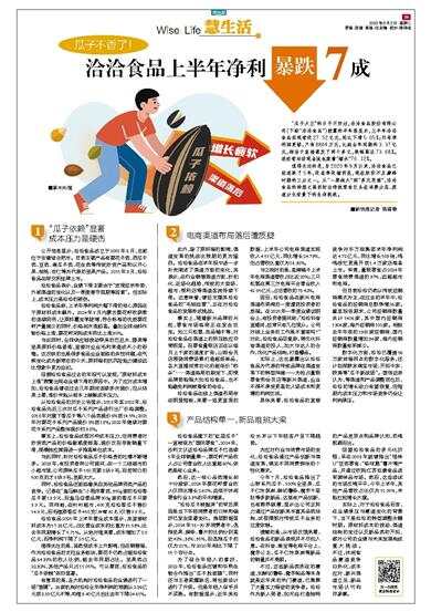“瓜子大王”的日子不好过,洽洽食品股份有限公司(下称“洽洽食品”)披露的半年报显示,上半年洽洽食品实现营收27.52亿元,同比下滑5.05%;归母净利润更惨,只有8864万元,比起去年同期的3.37亿元,相当于直接蒸发了两个多亿,跌幅高达73.68%。连经营活动现金流也跟着“缩水”76.12%。