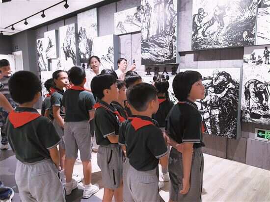 该抗战时期木刻创作展位于越秀区少年儿童图书馆4—5楼,展出抗战时期的木刻作品和相关主题文献,呈现了中国文化艺术界人士以刀为笔进行“文化抗战”的历程。据介绍,该活动也是馆校协同育人的积极探索,展现了在真实文化场景中阅读育人与思政育人的同频共振。