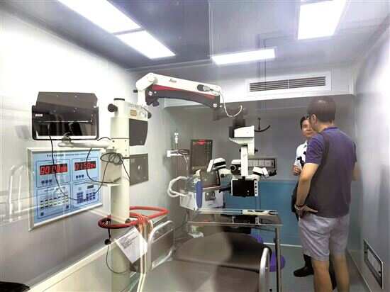 智能巡诊车的亮眼之处是“移动”,即将投入使用的“移动手术室”则会是它的好搭档。眼科移动手术室设在一个标准集装箱里,配备了符合开展眼科手术条件的仪器设备。经监测,移动手术室已达到了符合开展眼科手术的条件,专家通过远程操作,就能为千里之外的患者开展眼科手术。