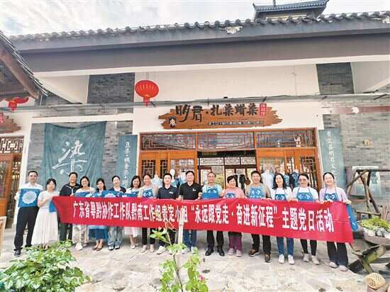 粤黔协作贵定小组组长,县委常委、副县长温远辉向新一批援黔专技人才表示热烈欢迎,并鼓励大家在各自岗位上发扬协作精神,扎实推动当地教育、医疗工作不断取得新成效。会后,贵定小组组织全体援黔干部、人才体验了省级非物质文化遗产——豆染技艺,深入体会民族传统文化的深厚底蕴与独特魅力。