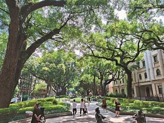 随后,记者一行来到荔湾区沙面岛,“广州市古树公园”牌匾映入眼帘。据悉,沙面古树公园是荔湾区首个古树公园,占地30公顷,拥有古树名木130多株,其中最长树龄300多岁,最小的也有100多岁,大部分古树是沙面岛建设之初栽下的。