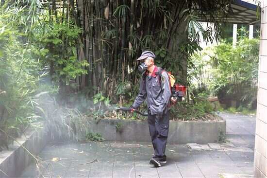 ■7月25日,广州市11个区177个街镇开展集中灭蚊行动。图为越秀区大塘街在开展灭蚊。