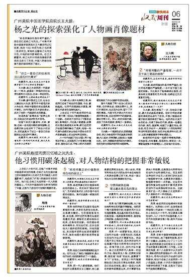 “杨老师搞创作是非常严谨的。”现在回忆起杨之光先生,广州美术学院中国画学院原院长王大鹏依然记忆犹新,他在1982年成为杨之光的第二批研究生,常有机会看杨之光先生示范,对他的创作影响较深。在王大鹏看来,杨之光针对传统肖像画的表现技法进行了改良,中国人物画在肖像方面的弱项得到了强化。