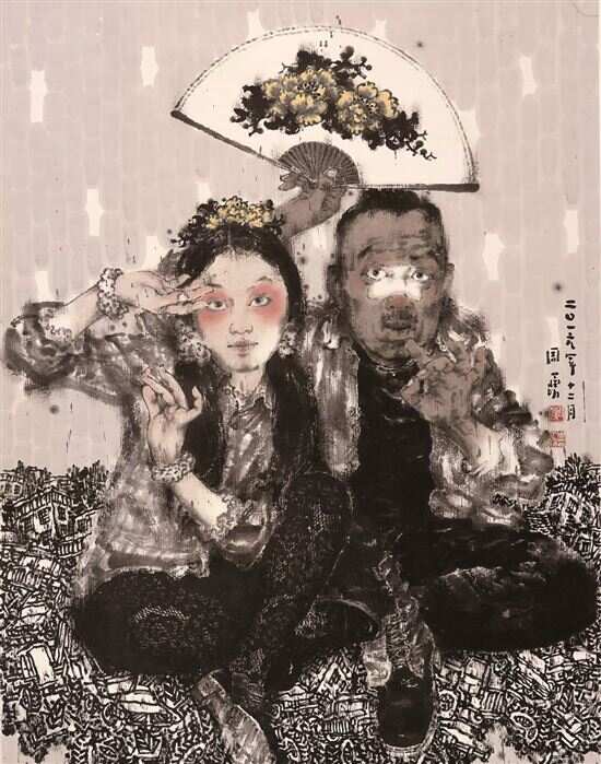 周湧:不一定都要写生,现实主义创作方法是一定要写生的,但是其它的创作方法并不需要写生。我自己是不怎么写生的,因为我的创作方法是属于观念化和符号化的创作方法。改革开放之后,创作方法丰富了。杨之光老师那代人是单一的创作方法:描绘现实人物,还原现实场景,画的是“他者”的生活,就需要下乡下厂去写生。到我这个时代强调描绘自己身边的日常生活感受,我把自己的生活体验,通过一组设计岀来的形象和场景画出来,并不需要写生具体人和场景,这是观念化和符号化的创作方法和表现方法。而且我把这种创作方法引入到我们研究生的人物画教学中来,也算是我对国画人物画教学做的一点贡献。社会的丰富性和复杂性迫使我们要用更多样的创作方法来描绘现实生活。这就是我们这一代人跟杨之光老师那一代人面临的不一样的挑战。
