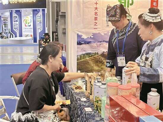 ▲第33届广博会现场,参展企业推介黔南产品。