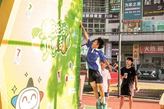 随着活动的推进,“绿色生活 顶呱刮”运动体验区逐渐热闹起来。在这里,趣味运动与公益科普巧妙结合,吸引了众多市民的目光。“‘投’出风采”定点投篮、“‘脑动’动出彩”足球挑战、“‘跳’出精彩”跳高、“‘哐’动时刻”保龄球等趣味互动游戏,点燃了现场的热情。